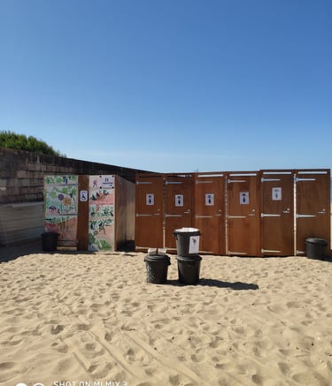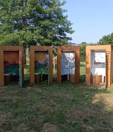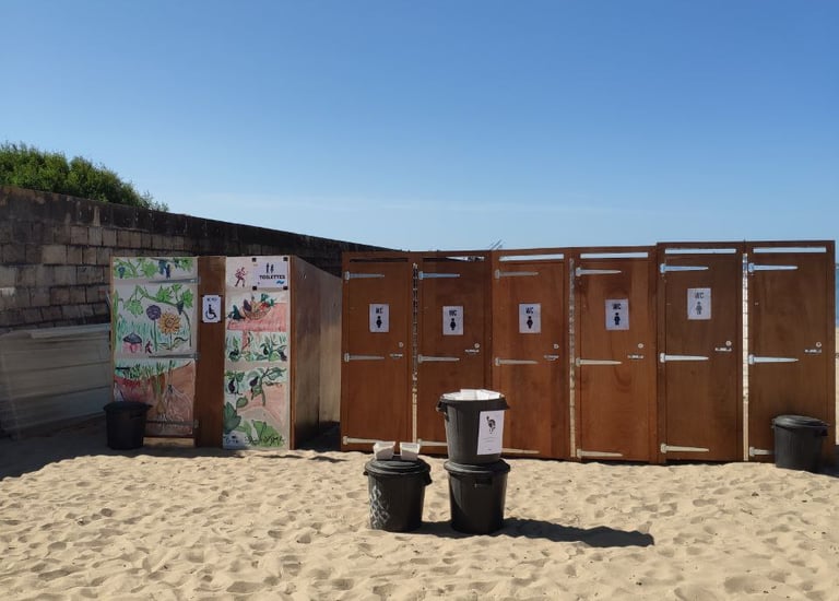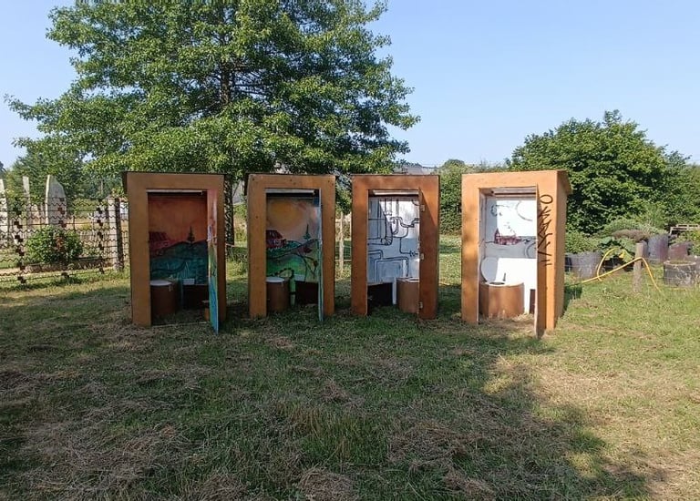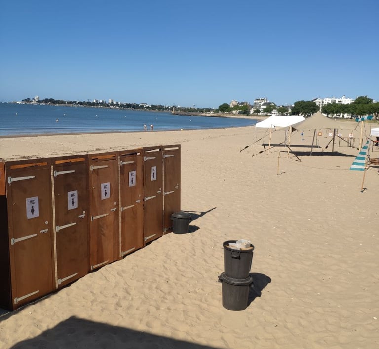 Toilettes sèches et urinoirs, jusqu'a 5000 personnes.