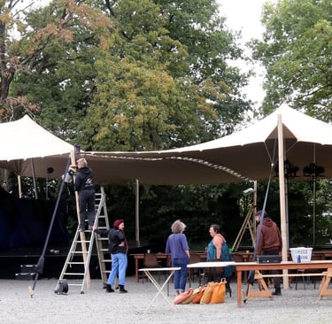 La couverture du public avec gradins est un élément clé pour garantir une expérience spectateur de qualité. La tente nomade permet de protéger efficacement les zones accueillant le public, tout en assurant une excellente visibilité de la scène.