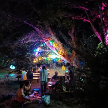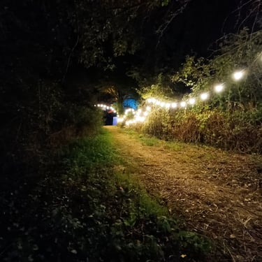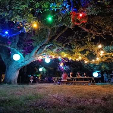 Pour structurer visuellement un lieu et révéler ses volumes, nous utilisons également des PAR LED RGB étanches. Ces projecteurs permettent de mettre en lumière les arbres, éléments de décor ou points remarquables, en jouant sur les couleurs et les intensités.