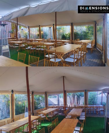 Grâce à la location de murs Crystal, votre tente de réception Stretch Tent 10 × 15 devient parfaitement protégée du vent, de la pluie et des conditions météorologiques changeantes.